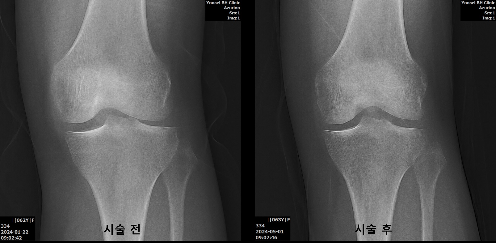 시술은 통증 감소, 움직임 개선, 연골 보존을 목표로 하며,